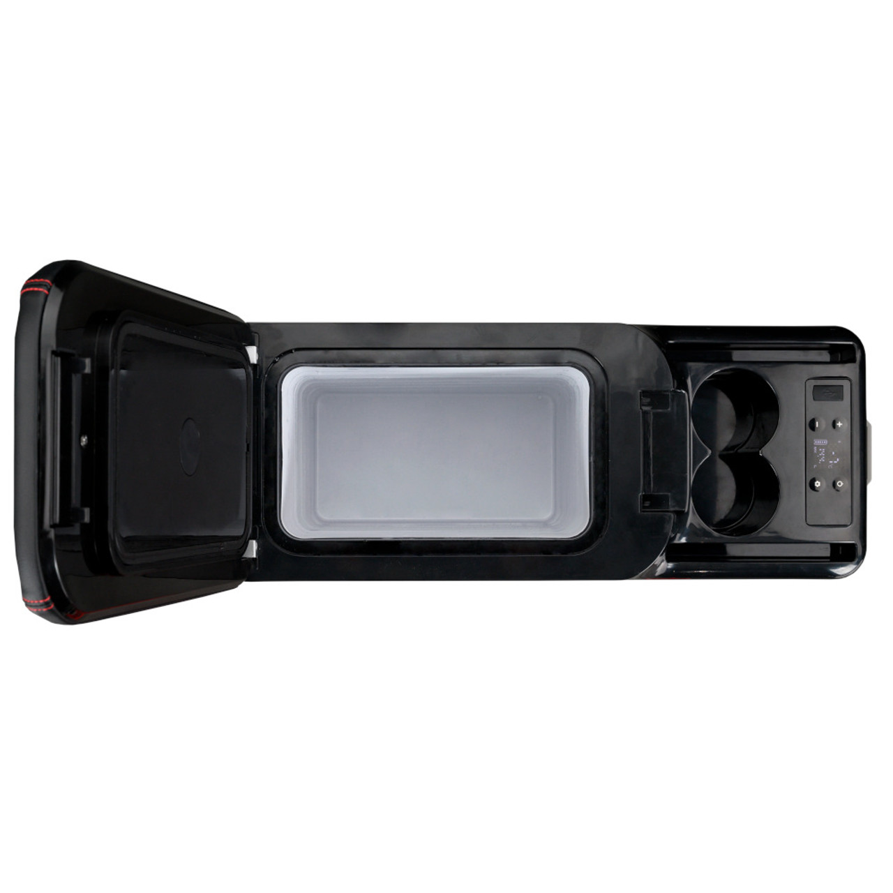 Complete with cup holders, USB charge ports, digital display and leather fridge lid, this armrest fridge makes an ideal accessory for drivers.