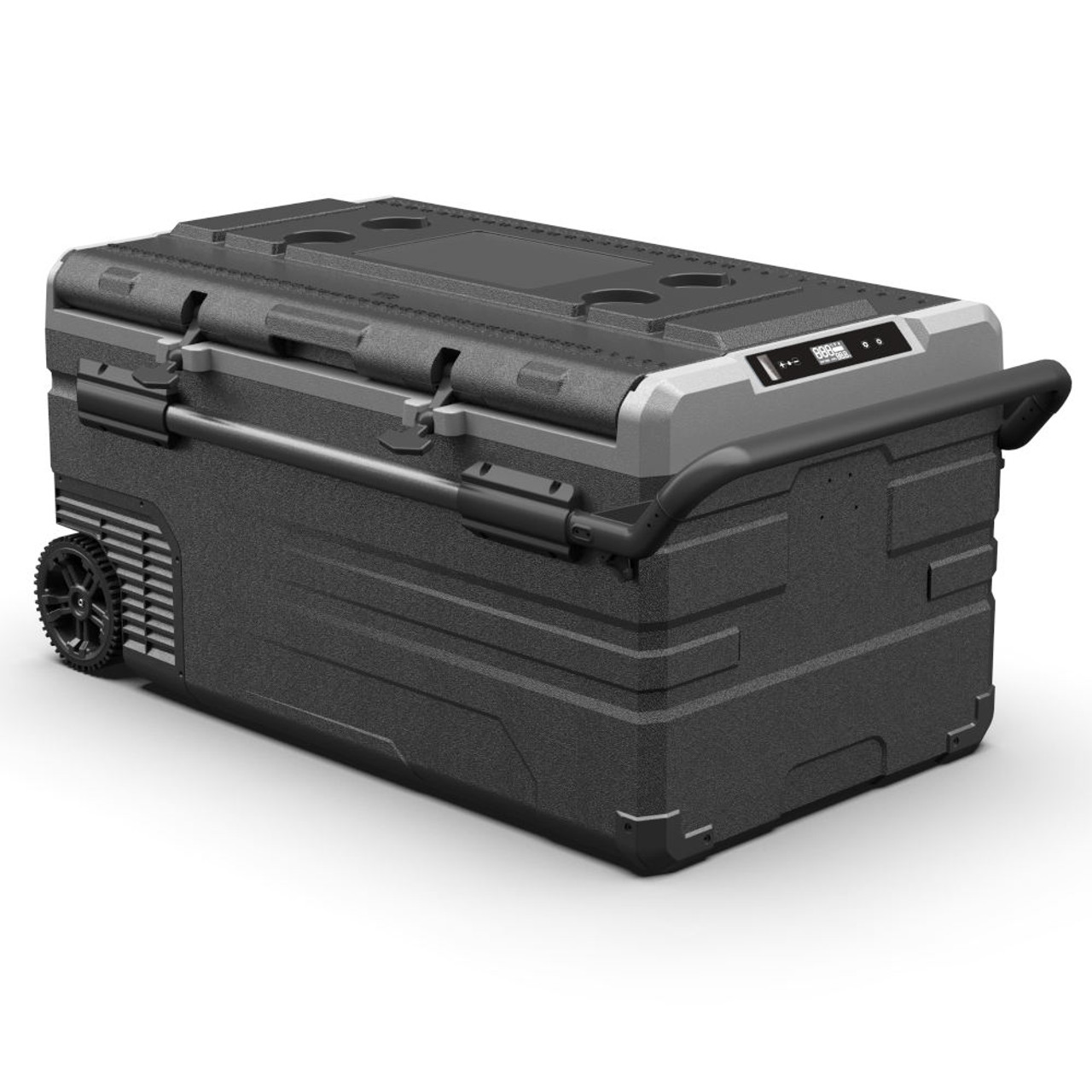 - Portable camping coolbox style fridge with independent temperature control