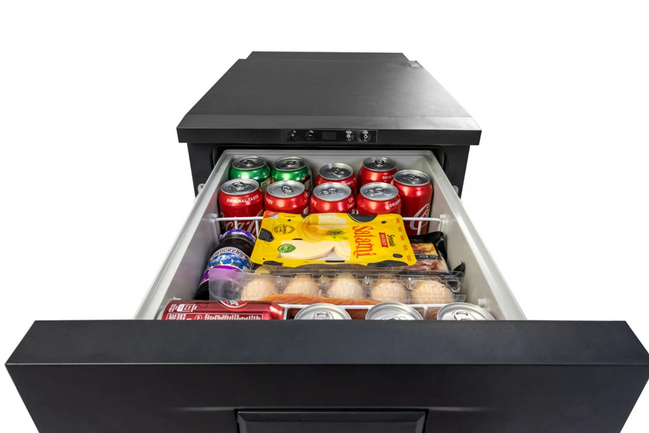 This Adventurer 12 volt drawer fridge uses a powerful and efficient compressor, ensuring you get the best battery life from your camper or motorhome. The drawer runs on a smooth roller system.