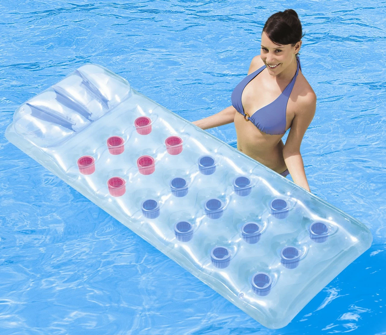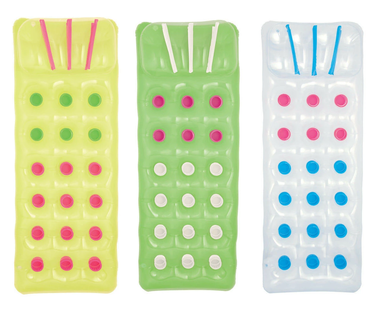 18 Pocket swimming pool lounger available in green, pearl and yellow, bright coloured pool lilo. Size 188 x 71cm