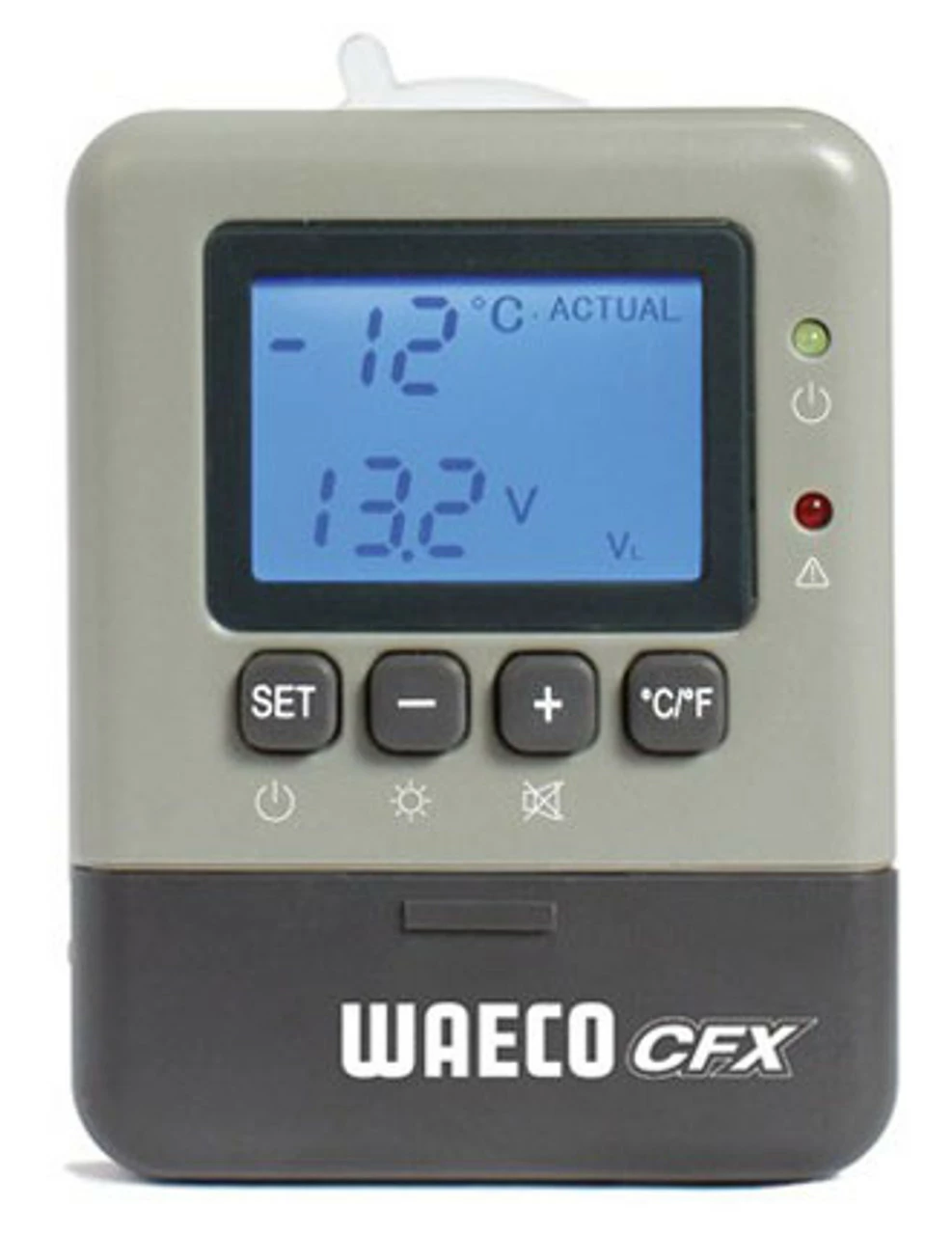 The Waeco CFX Wireless Display shows internal temperature and voltage protection levels and also has adjustable alarm limits which enable an audible warning if the temperature rises or the battery gets low.