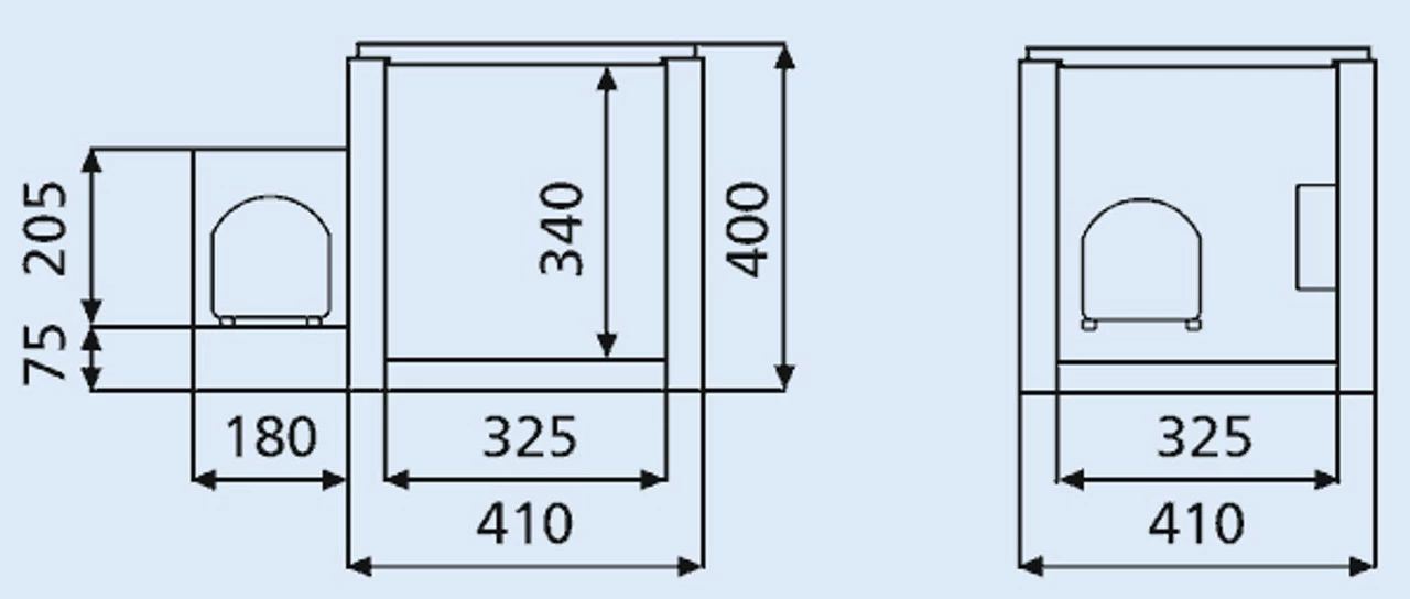 - Outside: zinc coated sheet steel Inside: stainless steel Base: plastic