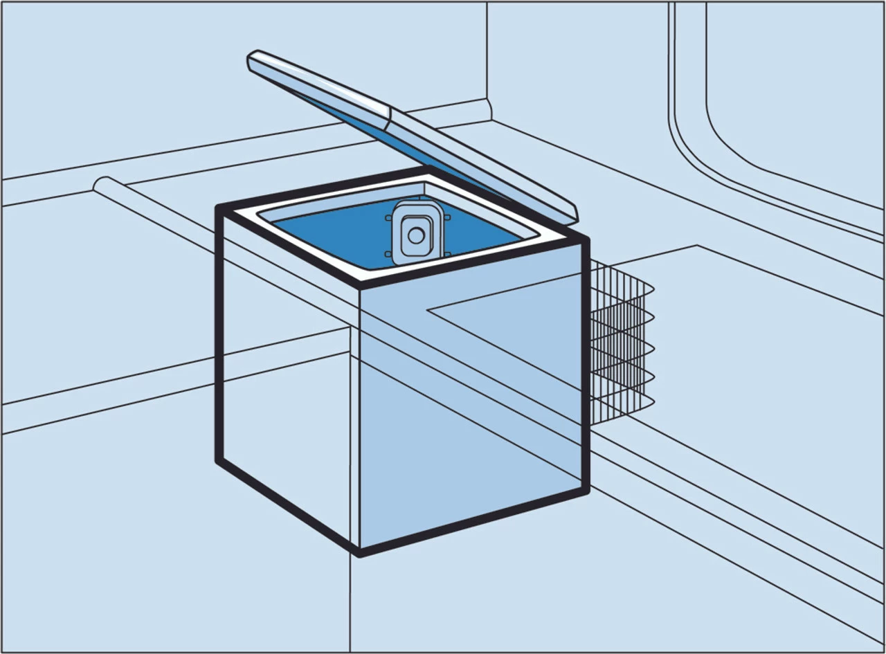 The Dometic Waeco Coolmatic CB36 Top Loading Fridge has a space efficient design for confined spaces and powerful cooling