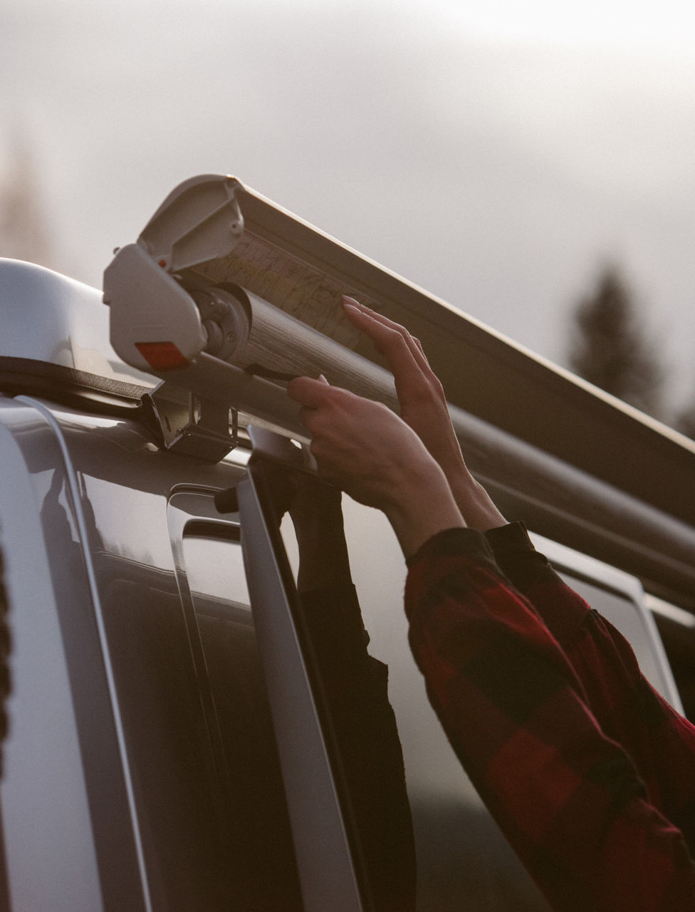 The F35 Pro Caravan and Camper Van awning keeps things simple and straight forward, helping to minimise pitching time. Using integrated telescopic legs folding out from the awning roller tube and reinforced tensioning arms, the awning fabric stays taut and sag free.