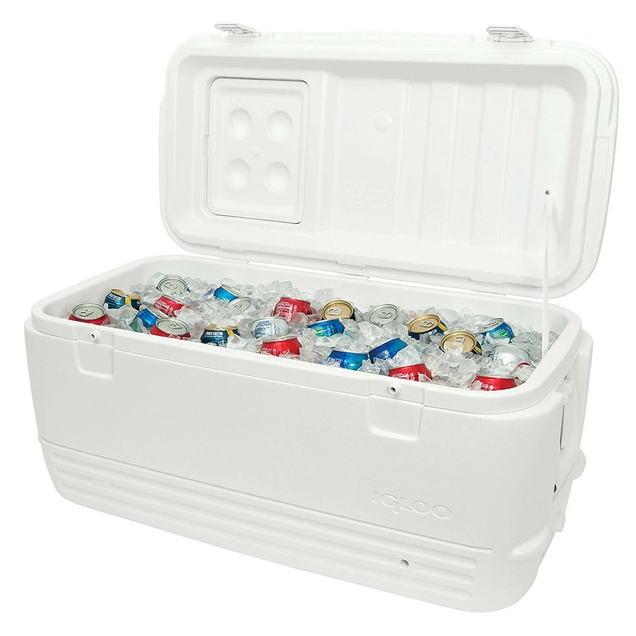 Featuring a crafty lid hatch that lets you sneak food and drinks on the move without letting all the cold air out, the Igloo Quick & Cool 100 is a tough yet innovative cooler with 95 litres of storage space, making it the perfect cooler for the outdoor adventure of your choice.