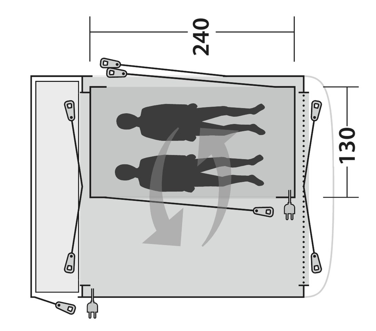 This inner tent, which is easy and quick to pitch, makes a bedroom for guests in next to no time. The sleeping area is amble for two and expands the sleeping capacity of your campervan significantly. This tent uses toggles to attach to your awning. The walls are made of breathable polyester, and the base uses a strong waterproof 75D fabric.