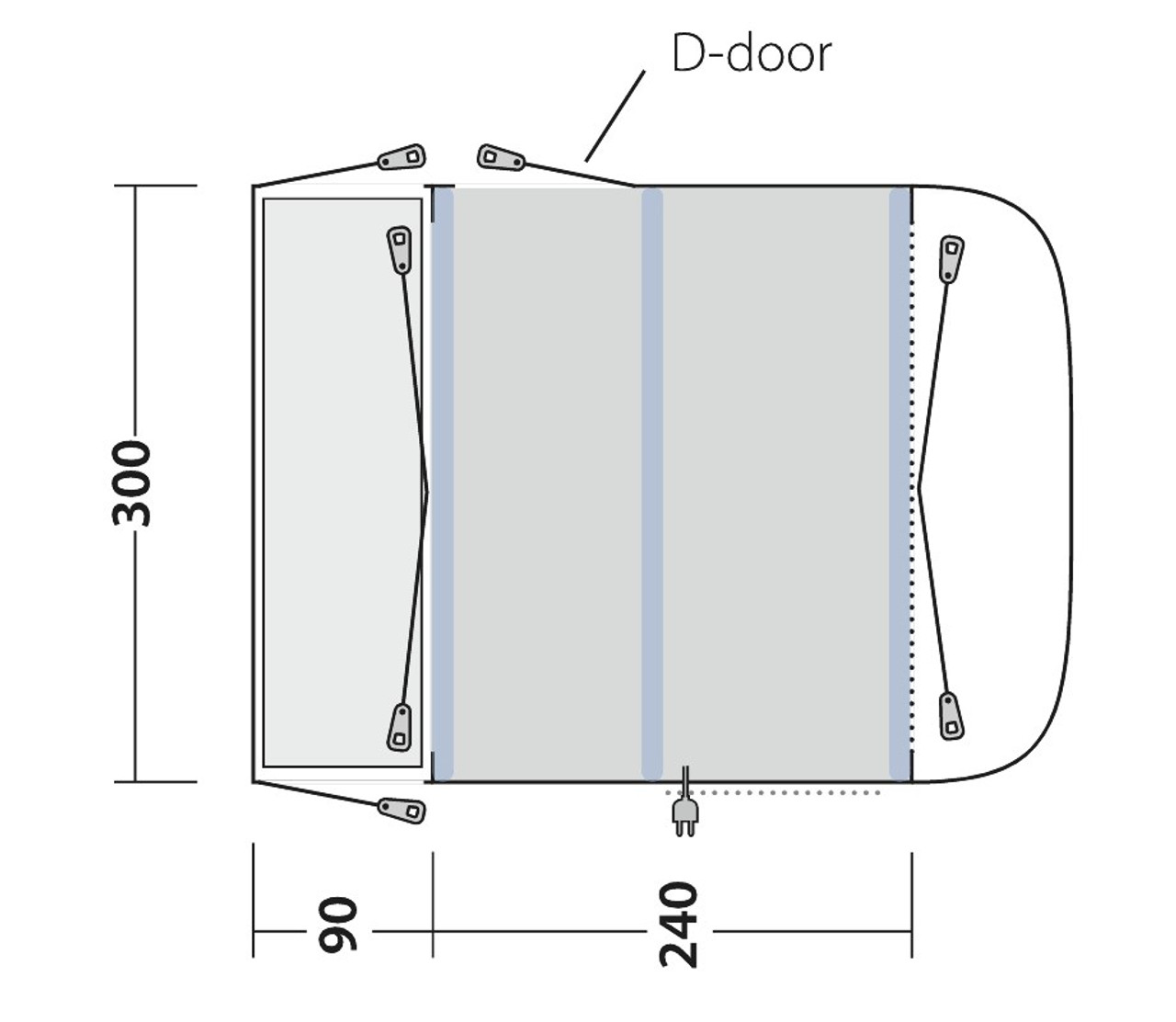 - Attaches to campervans with a rail height of 240-270cm