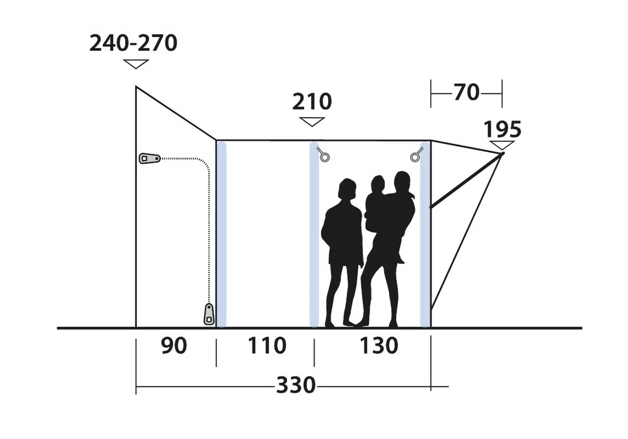 The optional Newburg 240 Inner Tent allows this awning to sleep two, whilst still providing extra space and without blocking access to the main doors or your vehicle. This makes it a great choice for growing families.