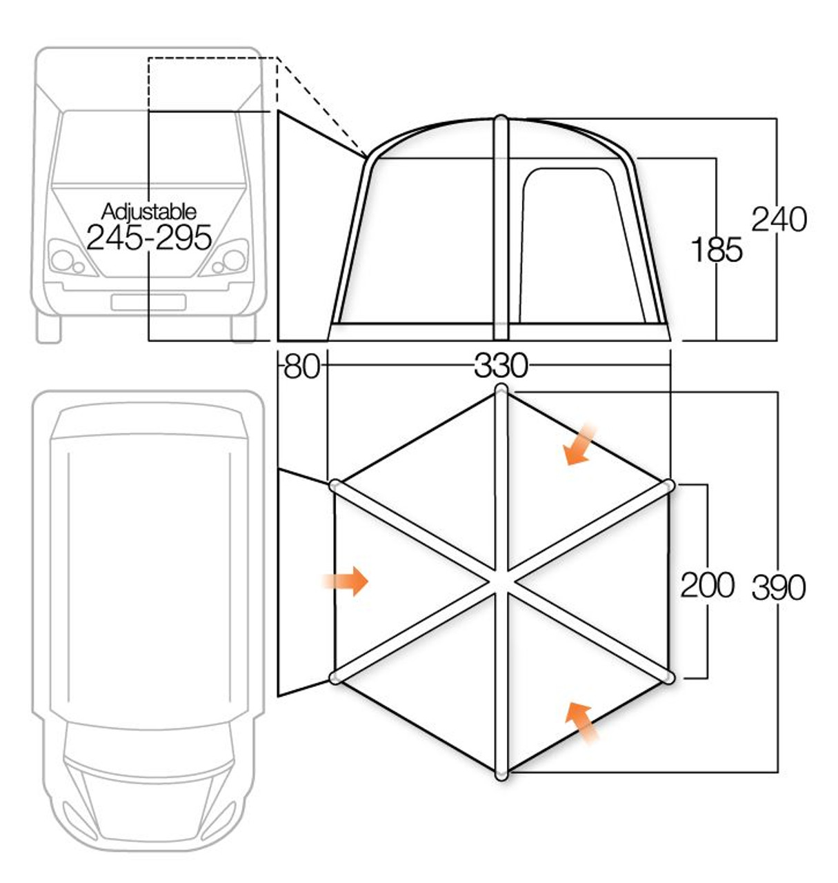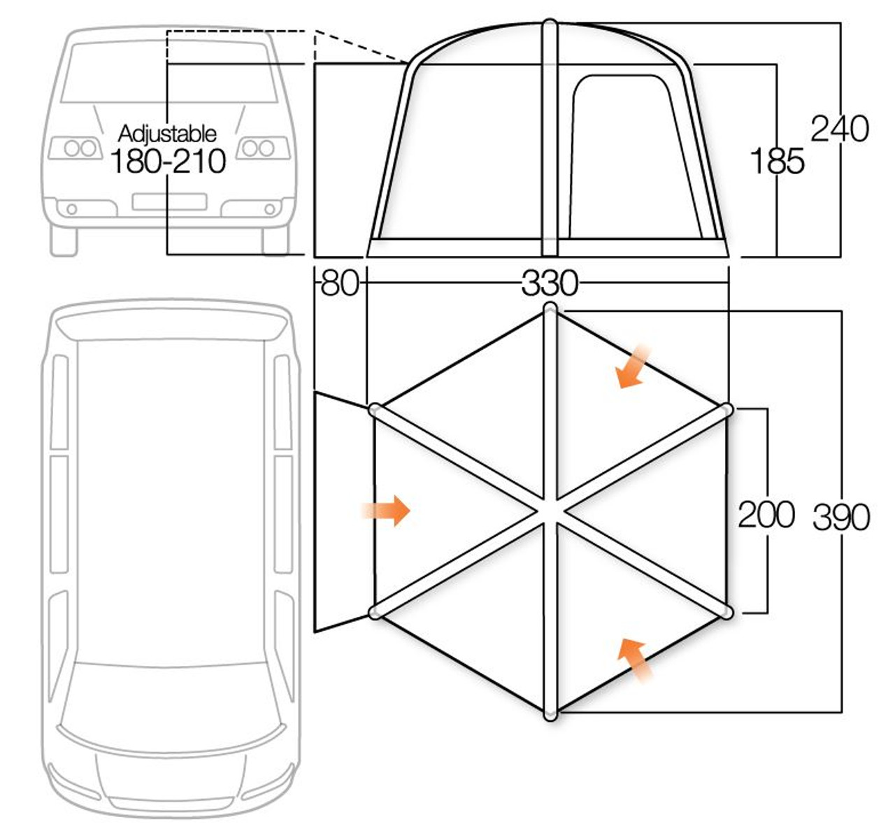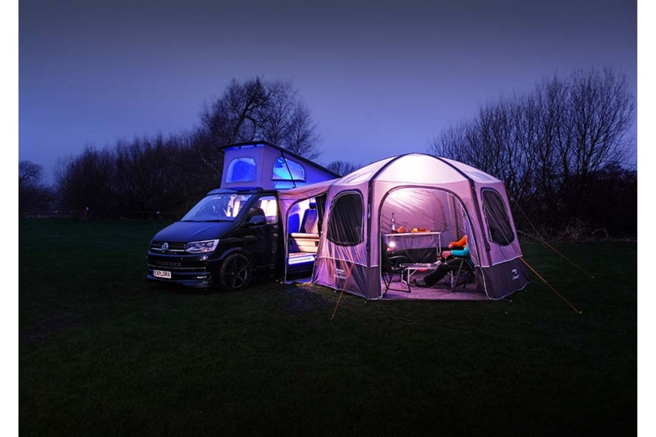 The Airhub Hexaway expands upon the popularity of the Airhub Hex, directly connecting to the side of your campervan. The awning is constructed from industry leading Sentinel Pro 420 fabric which features PU coatings making it incredibly strong, durable, and weather resistant. The hexagonal design creates a versatile social space alongside your camper, maximising on your space. The Hexaway can be a living room, bedroom, pets room or a social space – the choice is yours.