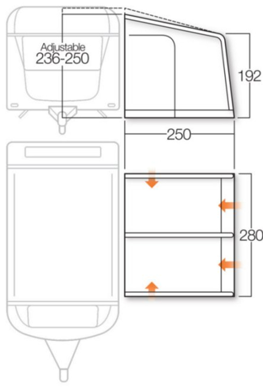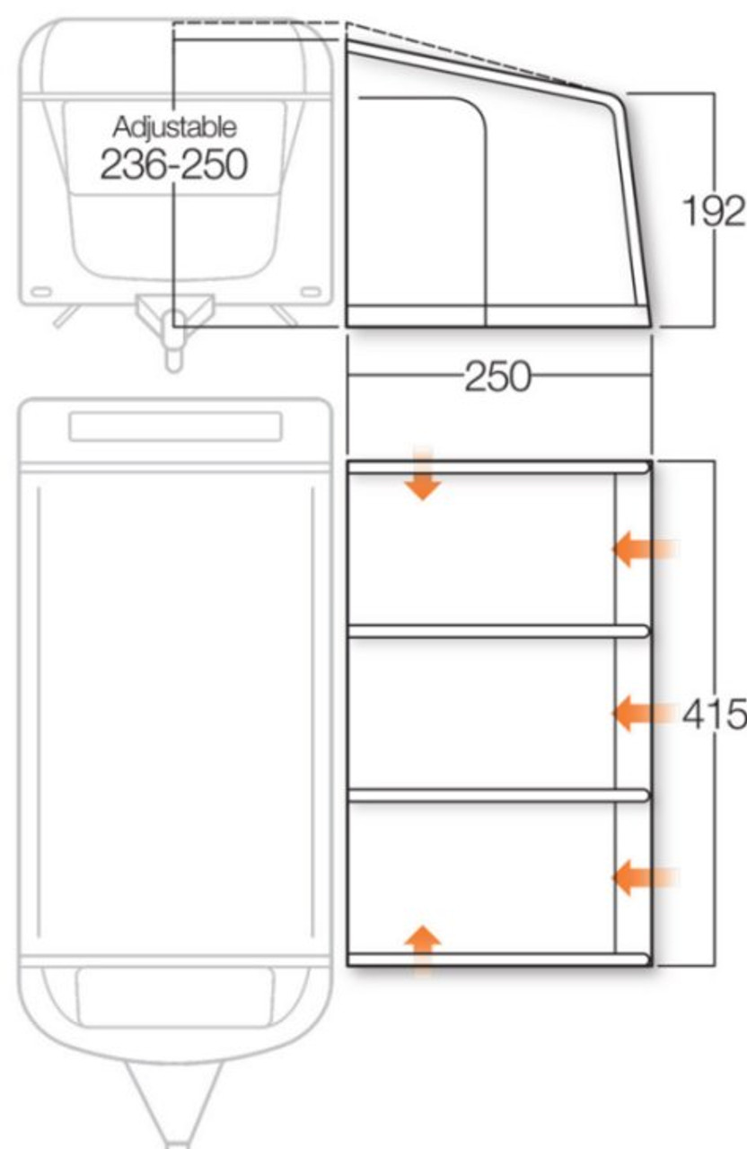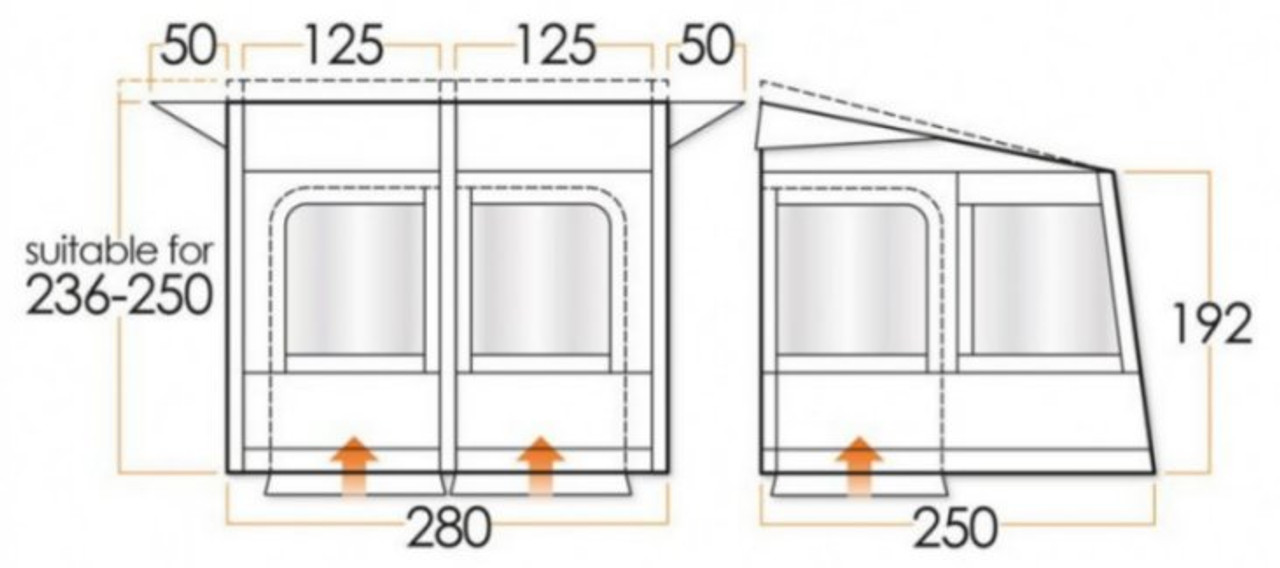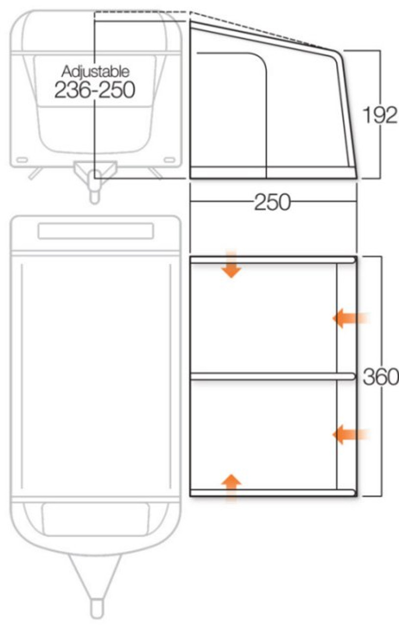 The Vango Varkala Connect Caravan awning comes in 4 variations to ensure the best of fits to your caravan. Available in 280cm, 360cm, 420cm, and 520cm.