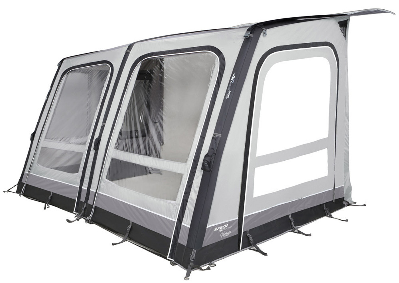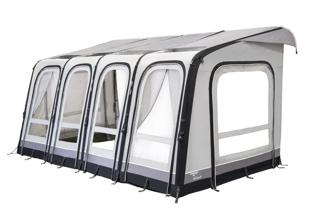 The Vango Varkala Connect is the latest of the Varkala caravan range. Designed with a new eye-catching contrasting grey. The flexible front doors can be unzipped from the top, and rolled to the side, or unzipped from the sides to store in their handy stitched in storage bags.