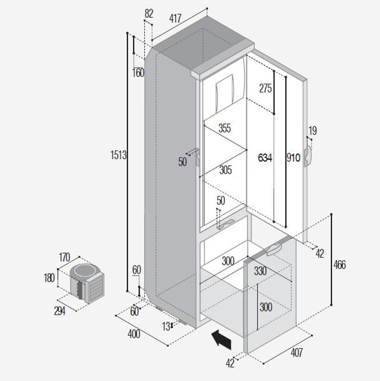The Vitrifrigo SLIM150 comes with 144 litres of storage and was developed as fridge freezer for Campervans and larger panel van conversions in the motorhome market, but it’s also the ideal option for marine use thanks to its shallow depth & compact dimensions. Available in Black or Light Grey colour.